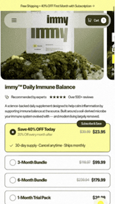 After investing over $20K in an agency-led website, immy’s DTC experience wasn’t delivering on clarity, conversion, or subscription growth. The site needed to better communicate the brand’s science-backed value and perform as the main revenue driver.